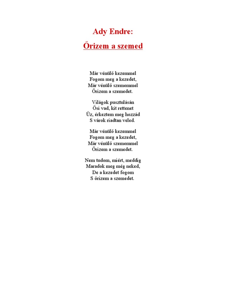 Ady Endre őrizem A Szemed