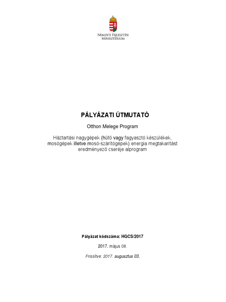 Otthon Melege Program Haztartasi Nagygepek Mosogep Energia Megtakaritast Eredmenyezo Csereje Alprogram Palyazat Kodszama Mgcs 15 Pdf Free Download