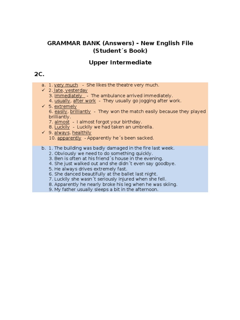 New English File Upper Intermediate Grammar Bank Answer Key